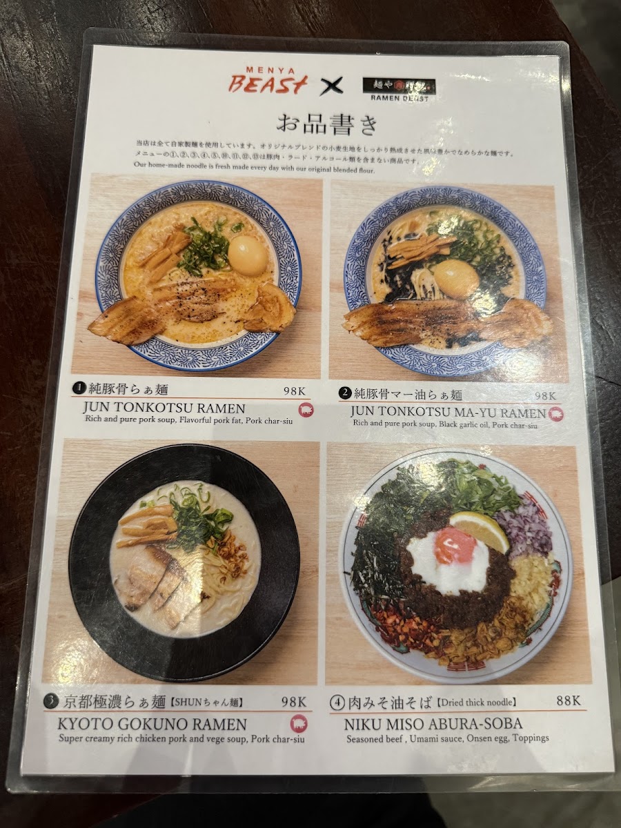 For those seeking a unique take, the Niku Miso Abura Soba offers a dry noodle experience, allowing for a delightful mix of ingredients and textures. Customers rave about the juicy, tender pork collab with Menya Beast, perfectly paired with intensely flavorful broth.